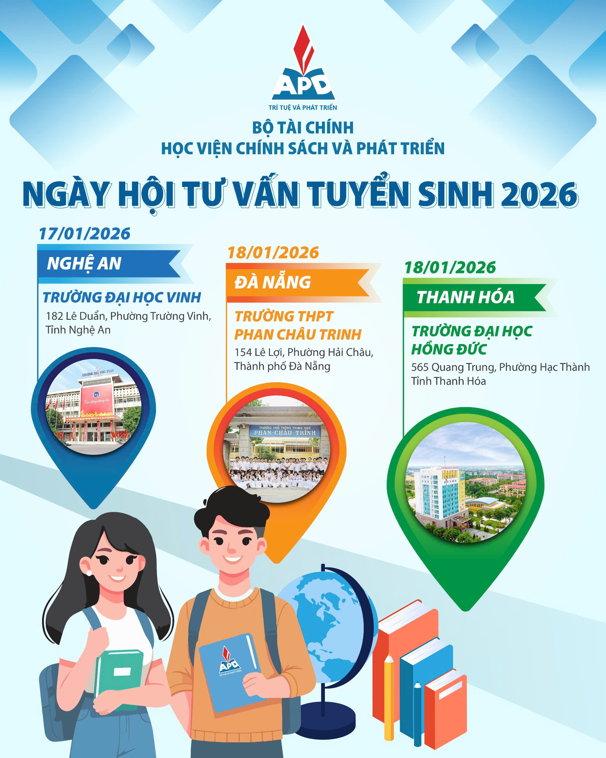 Học viện Chính sách và Phát triển tham gia Ngày hội tư vấn tuyển sinh – hướng nghiệp tại Nghệ An, Thanh Hóa và thành phố Đà Nẵng
