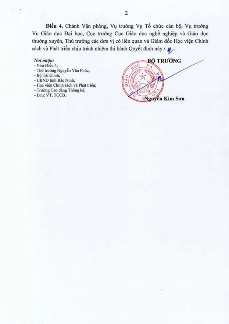 Theo Quyết định số 296/QĐ-BGDĐT ngày 05/02/2026, Bộ Giáo dục và Đào tạo phê duyệt chủ trương thành lập Phân hiệu Học viện Chính sách và Phát triển tại tỉnh Bắc Ninh, trên cơ sở Trường Cao đẳng Thống kê.