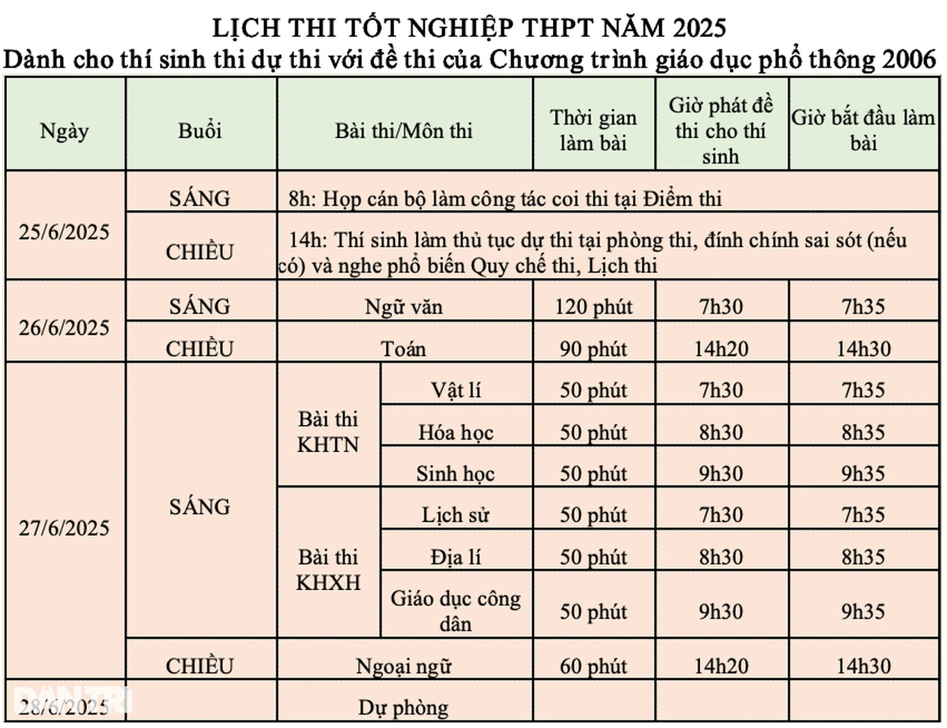 Kỳ thi tốt nghiệp THPT năm 2025 diễn ra trong hai ngày 26-27/6.