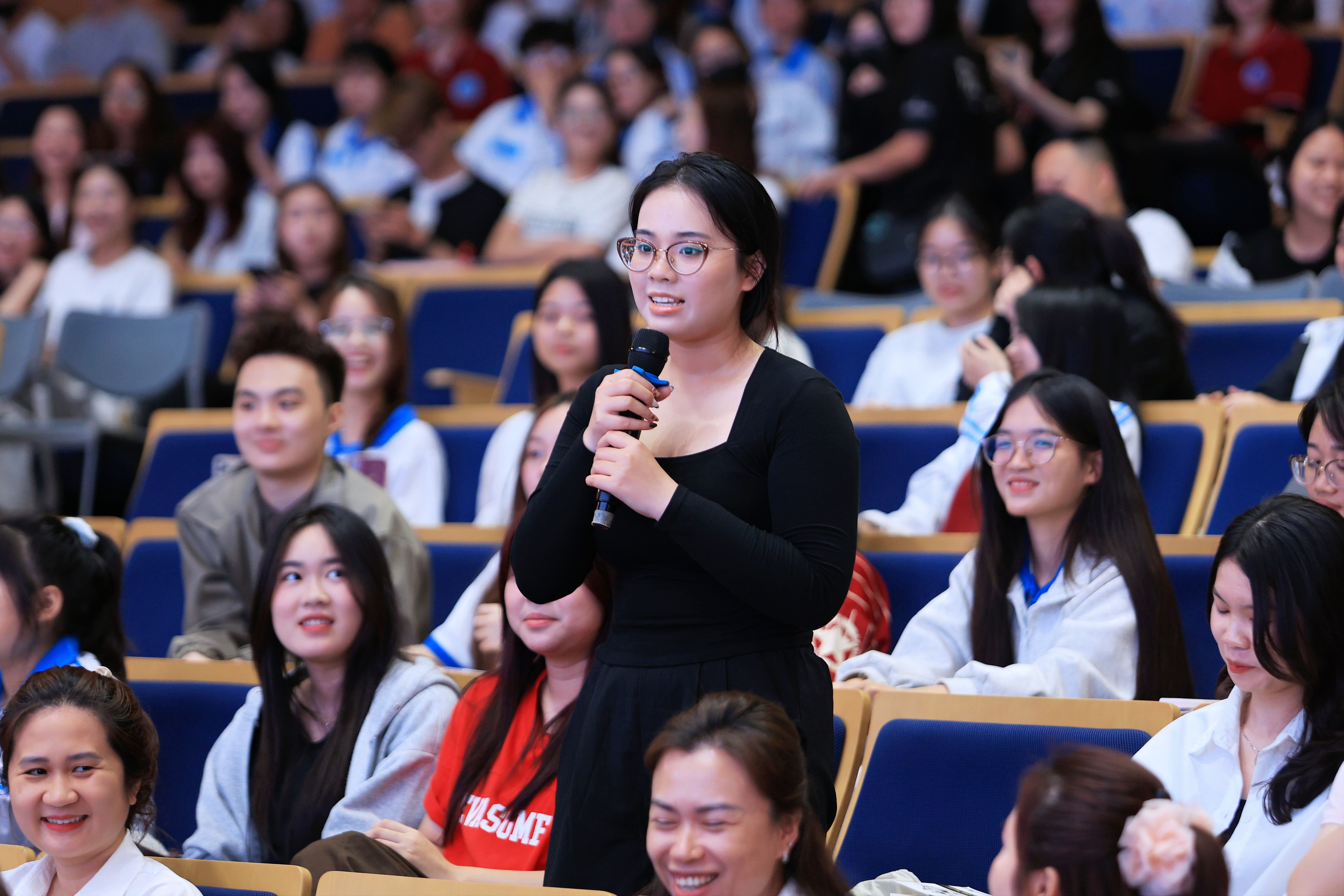 Đặc biệt, chương trình còn dành thời lượng cho phần giao lưu, hỏi đáp trực tiếp giữa khách mời và sinh viên. Nhiều câu hỏi thiết thực xoay quanh định hướng nghề nghiệp, kỹ năng phát triển bản thân, bí quyết vượt qua khó khăn và nắm bắt cơ hội đã được các diễn giả giải đáp cởi mở, thẳng thắn. Sự tương tác tích cực, chủ động giữa host, khách mời và sinh viên đã góp phần tạo nên không khí trao đổi sôi nổi, gần gũi và giàu giá trị thực tiễn.