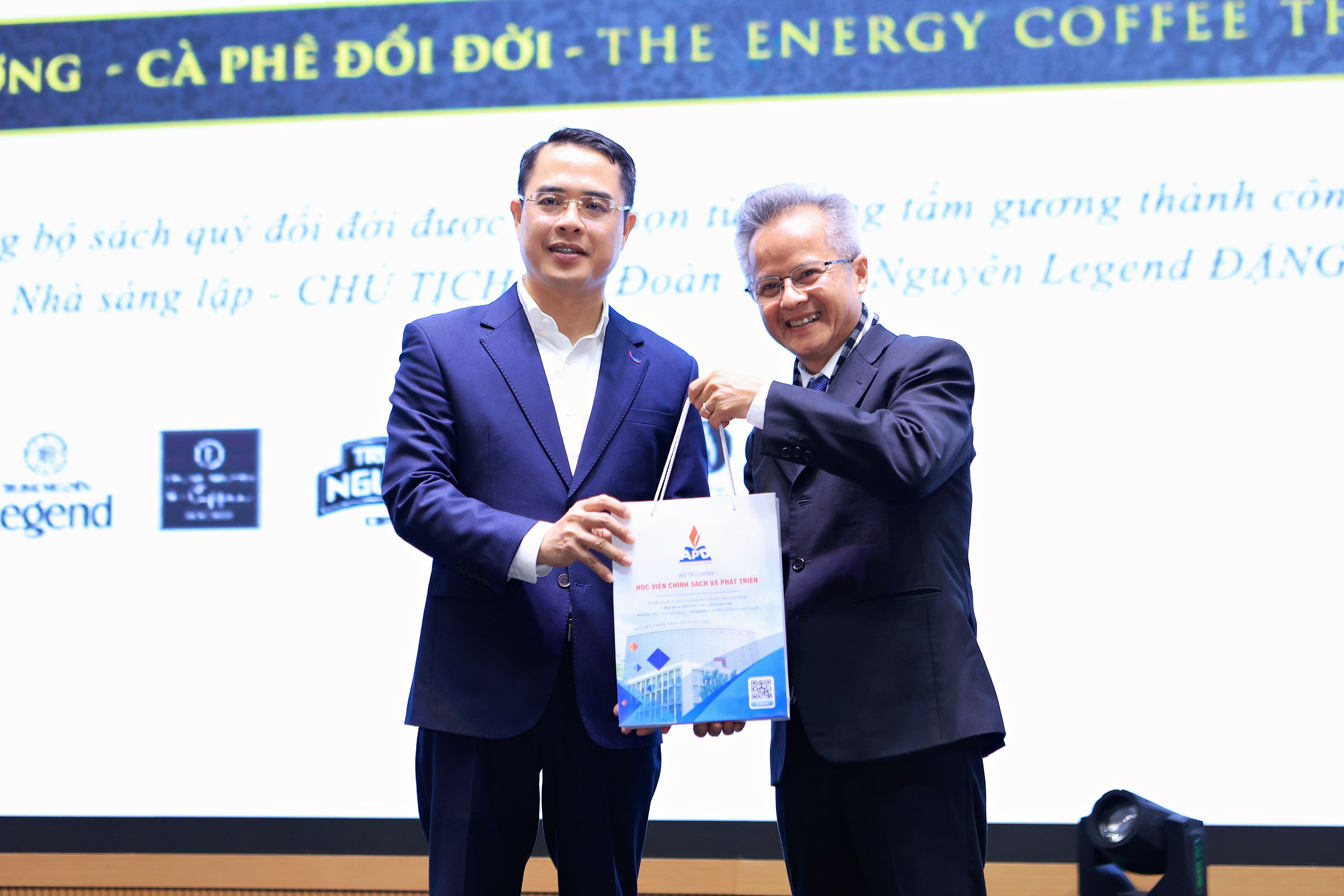 Đại diện Tập đoàn Trung Nguyên Legend trao quà lưu niệm tới Lãnh đạo Học viện Chính sách và Phát triển