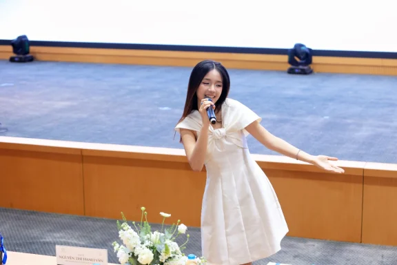 Bên cạnh phần tọa đàm và giao lưu, chương trình còn được tiếp nối với phần trình diễn nghệ thuật đặc sắc do ca sĩ khách mời Izara Thiên Nga thể hiện. Với giọng hát truyền cảm và phong cách biểu diễn chuyên nghiệp, các ca khúc được trình bày đã góp phần tạo nên không gian nghệ thuật sâu lắng, giàu cảm xúc, mang lại những phút giây thư giãn ý nghĩa cho đại biểu và sinh viên tham dự. Phần giao lưu âm nhạc không chỉ làm phong phú thêm nội dung chương trình mà còn góp phần lan tỏa thông điệp tích cực, khơi dậy tinh thần lạc quan, niềm tin và khát vọng vươn lên trong thế hệ trẻ, qua đó tạo nên sự kết nối hài hòa giữa tri thức, cảm xúc và giá trị nhân văn trong toàn bộ chương trình.