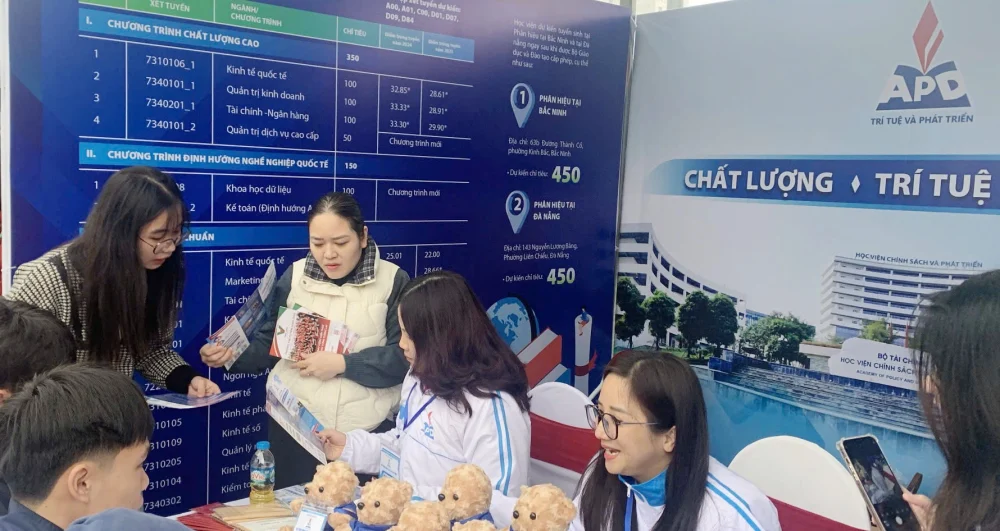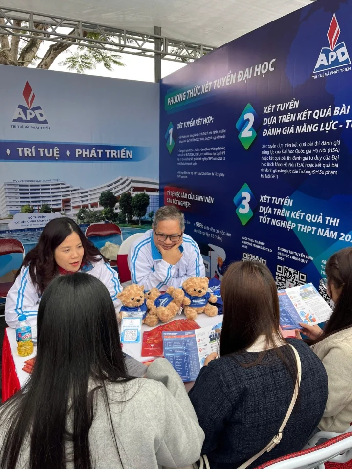 Trong không khí náo nhiệt và đầy hứng khởi của Ngày hội Tư vấn tuyển sinh – hướng nghiệp 2026, sáng nay ngày 24 tháng 01 năm 2025 tại Phú Thọ, gian tư vấn của Học viện Chính sách và Phát triển (APD) đã trở thành một trong những điểm đến thu hút sự quan tâm đông đảo nhất của các bạn học sinh và quý vị phụ huynh tỉnh Phú Thọ. Chương trình do Báo Tuổi Trẻ phối hợp cùng Vụ Giáo dục Đại học, Bộ Giáo dục và Đào tạo, tổ chức tại Trường THPT chuyên Hùng Vương, đã thực sự trở thành một ngày hội thông tin bổ ích cho các sĩ tử trước ngưỡng cửa lựa chọn tương lai.