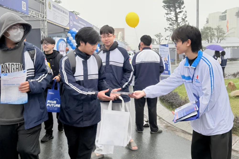 Ngay từ khi mở cửa, khuôn viên Trường THPT chuyên Hùng Vương đã trở nên sôi động với hàng ngàn học sinh đến từ khắp các trường THPT trên địa bàn tỉnh Phú Thọ và các vùng lân cận. Giữa không gian rộng lớn với hàng trăm gian tư vấn của các trường đại học, cao đẳng, gian hàng của Học viện Chính sách và Phát triển nổi bật với màu xanh thương hiệu, cùng sự chuẩn bị chu đáo và đội ngũ tư vấn chuyên nghiệp.
