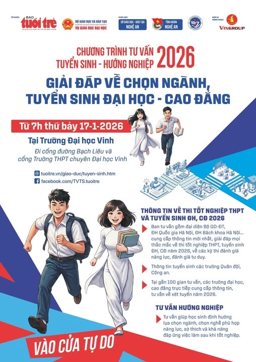 • Ngày 17/01/2026: Trường Đại học Vinh, số 182 Lê Duẩn, phường Trường Vinh, tỉnh Nghệ An.