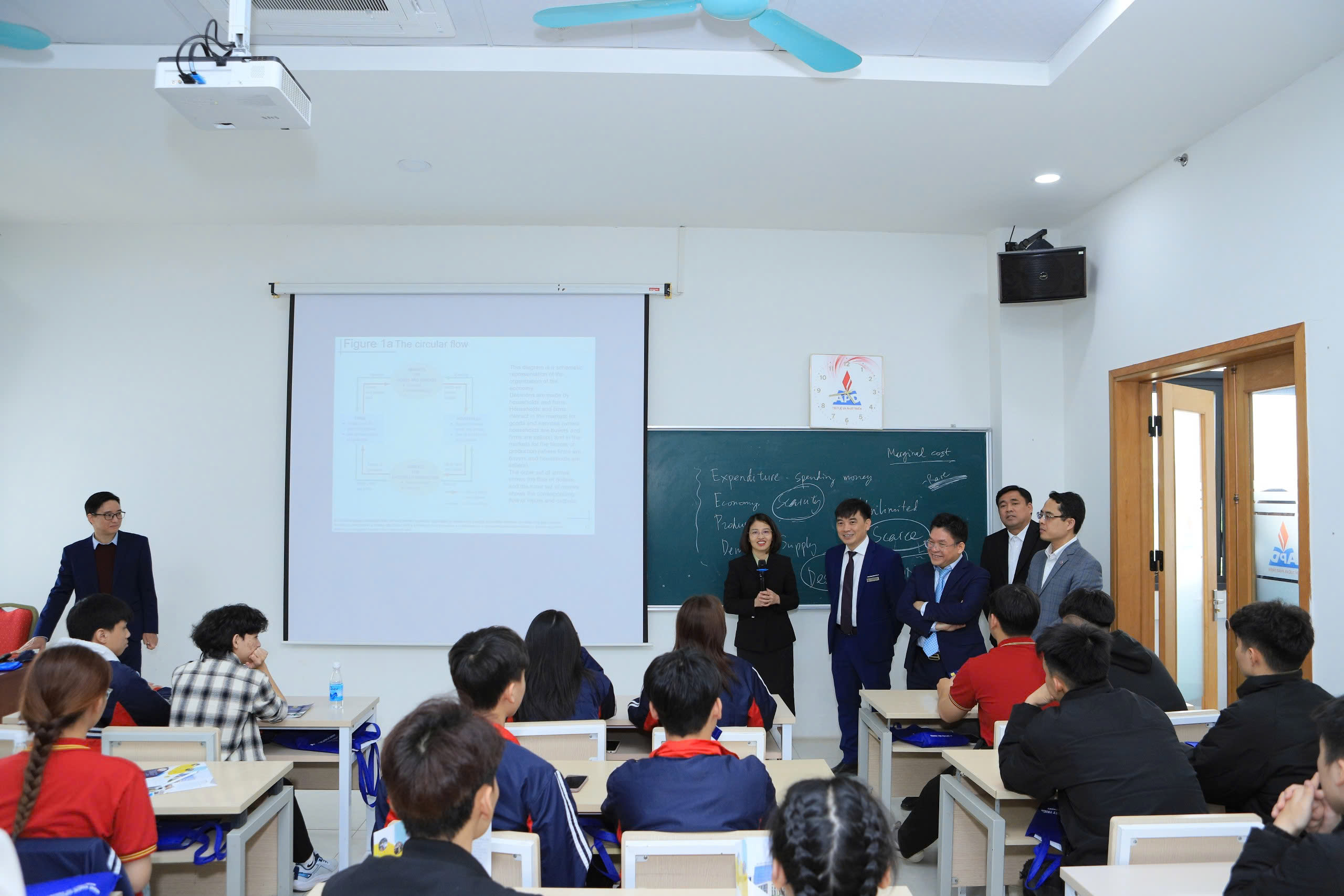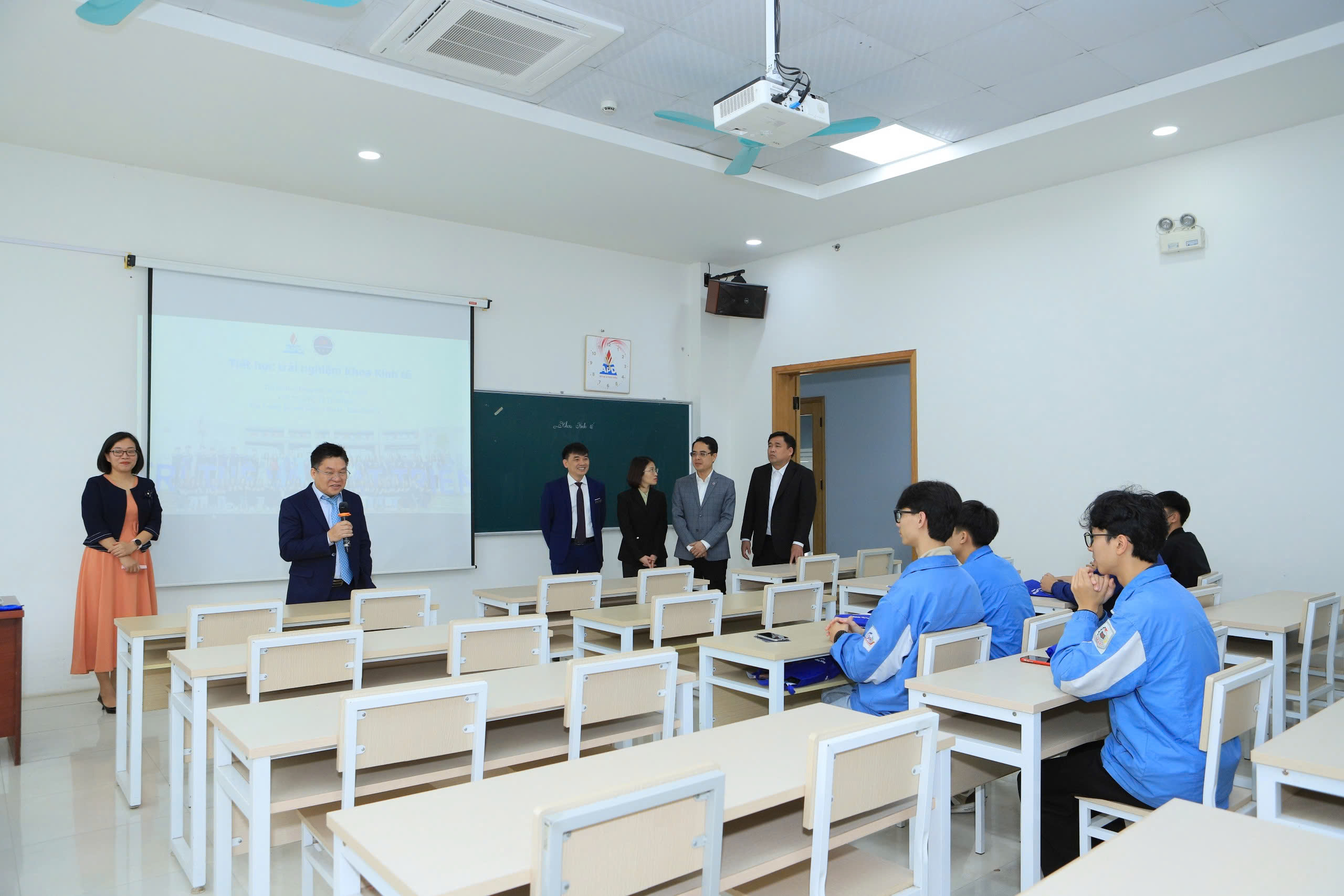 Điểm nhấn của chương trình là hoạt động “Trải nghiệm lớp học” – cơ hội để học sinh được tham gia các tiết học thực tế, khám phá phương pháp giảng dạy hiện đại và cảm nhận không khí học thuật sôi động tại APD. Các bạn được tiếp cận trực tiếp với những công nghệ giảng dạy tiên tiến, phương pháp học tập chủ động và không gian sáng tạo mà Học viện đang áp dụng. “Chưa bao giờ em thấy kinh tế học lại cuốn hút đến thế!” – Nguyễn Minh Anh, học sinh lớp 12 Trường THPT Hoài Đức C chia sẻ sau khi tham gia tiết học mô phỏng. “Các thầy cô không chỉ dạy kiến thức mà còn truyền cảm hứng để chúng em dám nghĩ, dám thực hiện ước mơ”.