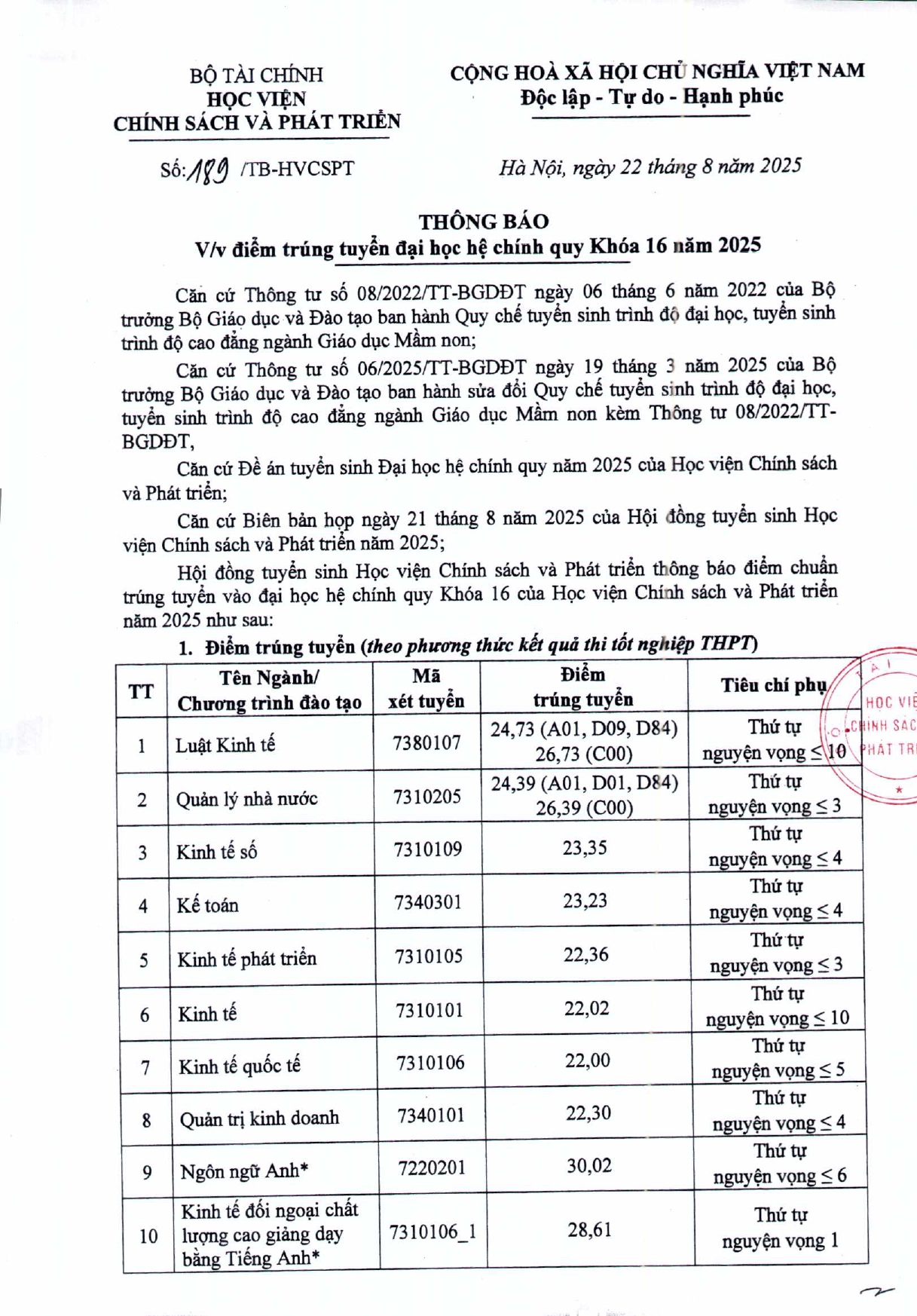 HỌC VIỆN CHÍNH SÁCH VÀ PHÁT TRIỂN